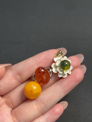C40732042 Amber and Beeswax Inlaid Ring + Pendant + Loose Beads Non-Gold Inlaid Total Weight Approx. 8.69g