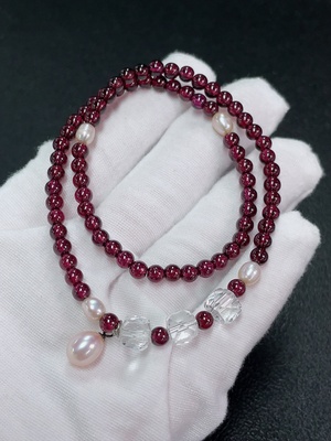 C40706279 Garnet bead bracelet with crystal and pearl, non-gold, total weight approx. 16.01g, bead size approx. 4.2mm