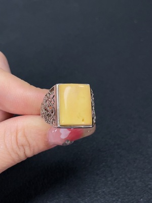 C39557822 Amber Beeswax Inlaid Ring, Non-Gold Setting, Adjustable, Total Weight Approx. 4.72g