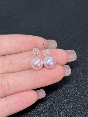 C39590401 18k seawater pearl earrings, color origin undetermined, total weight approx. 2g, size about 8.2mm