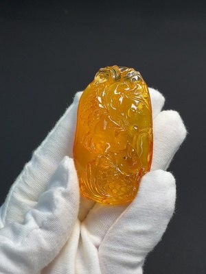 C39641237 Amber beeswax pendant with colorless coating, damaged, total weight about 20.99g