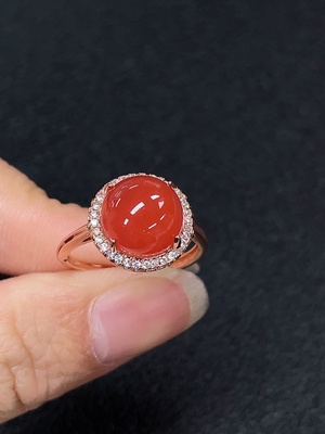 C35152420 South Red Agate Ring Non-Gold Adjustable Total Weight Approx. 3.64g Stone Size About 10.2mm