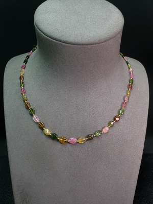C39590961 Tourmaline bead necklace with visible organic inclusions, non-metal, total weight approx. 11.06g