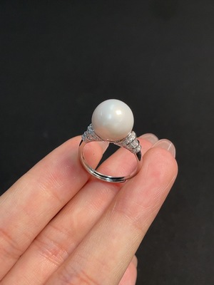 C39640703 Pearl Inlaid Ring Non-Gold Setting Adjustable Size Approximately 11.4mm Total Weight Approximately 4.17g