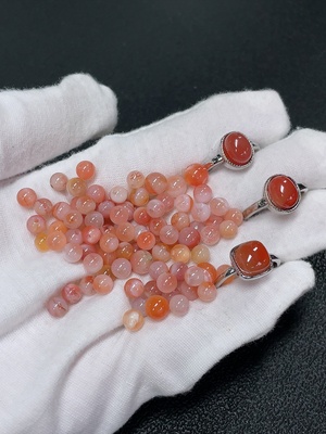 C40705862 Red Agate Ring + Loose Beads Non-Gold Adjustable Organic Matter Visible Total Weight Approx. 24.22g Sell as a Lot Quantity 50+