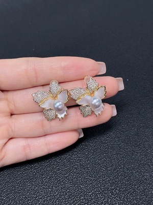 C40679048 Pearl inlaid ear studs non-gold setting approx. 8.3mm total weight about 1.64g