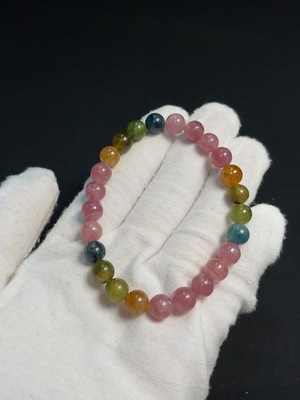 C40732299 Tourmaline Bracelet, approx. 7.7mm, total weight about 17.39g, contains other mineral components, visible organic matter