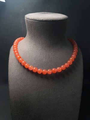C39660823 Red Agate Bead Necklace Non-Gold Visible Organic Matter Total Weight Approx. 61.4g Size About 9.1mm