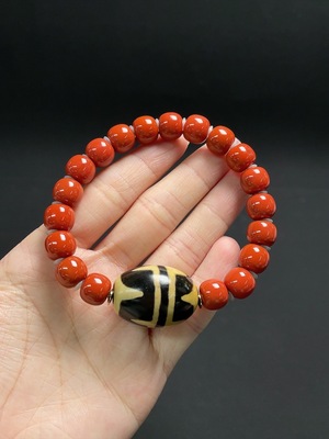 C39569947 South Red Agate Bracelet with Visible Organic Matter, Non-Natural Accent Stones, Non-Metal, Total Weight Approx. 37.2g, Size About 9.6mm
