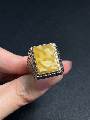 C36302269 Amber Beeswax Ring, Non-Gold, Adjustable, Total Weight Approximately 6.88g