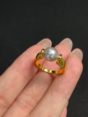 C40711757 18K Saltwater Pearl Ring, Color Origin Undetermined, Total Weight Approx. 5.58g, Size 15, Stone 8.4-8.9mm