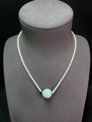 C40705334 Turquoise bead necklace with pearls, color origin undetermined, non-gold, total weight approximately 14.34g, including chain card about 15.8mm