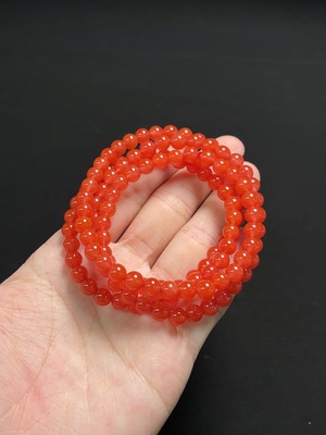 C35092533 Red Agate Bracelet with Visible Organic Matter, Non-Gold, Total Weight Approximately 17.07g, Size About 5.8mm