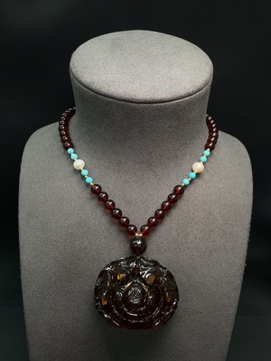 C14528650 Amber Beeswax Pendant with Rope, Total Weight Approx. 38.51g