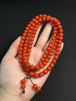 C35202206 Red Agate Beaded Necklace with Visible Organic Matter, Total Weight Approx. 67.55g, Bead Size ~7.8mm