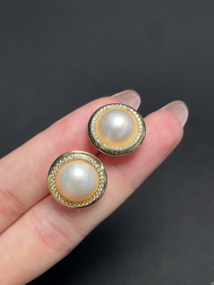 C40712315 Mosaic Seawater Pearl Stud Earrings Non-Gold Setting Approximately 9.9mm Total Weight About 3.65g