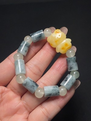 C40682720 Amber and Beeswax Bracelet with Jadeite and Non-Jadeite Beads Containing Other Mineral Components Total Weight Approximately 21.2g Size About 16.8mm (Jadeite with Inclusions)