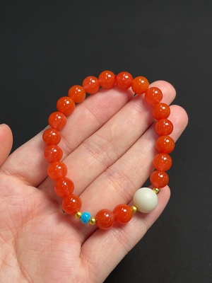 C39597082 Red Agate Bracelet (Non-Gold, Visible Organic Matter, Consider Non-Natural Accent Stones, Total Weight Approx. 13.99g, Size ~7.5mm)