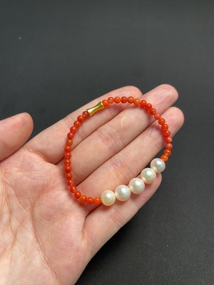 C39614577 Red Agate Bracelet with Pearl, Non-Gold, Visible Organic Matter, Total Weight Approx. 6.61g, Size About 5.4mm
