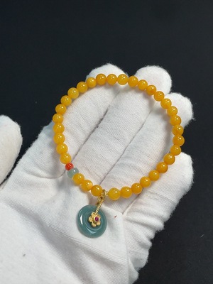 C39613793 Amber Beeswax Bracelet with Jadeite and Southern Red Agate, Non-Gold, Total Weight Approximately 4.49g, Size About 5.1mm