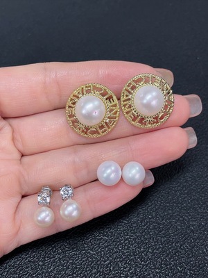 C39640728 Seawater Pearl Inlaid Earrings Non-Gold Setting Approx. 6.5mm Total Weight About 2.04g Color Origin Undetermined