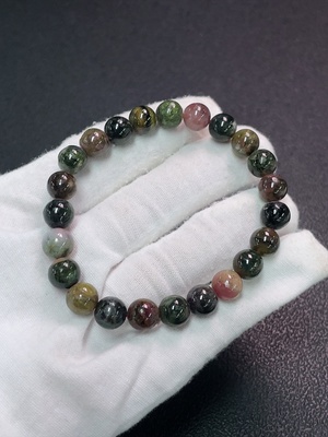 C36241154 Tourmaline Bracelet with Other Mineral Components, Visible Organic Matter, Total Weight Approx. 20.29g, Size 8.1mm (Mineral-Included)