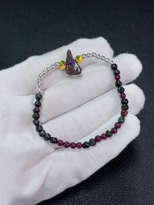 C40705615 Sugilite Bracelet with Garnet, Purple Only, Contains Other Mineral Components, Visible Organic Matter, Non-Metallic, Total Weight Approximately 5.92g, Bead Size Around 4.1mm (Included Minerals)