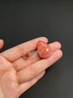 C38543915 Red Agate Inlaid Ring + Pendant, Non-Gold Inlay, Total Weight Approx. 8.25g, Visible Organic Matter
