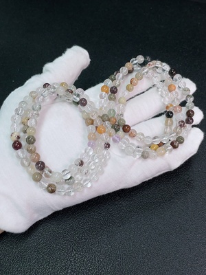 C38532771 Crystal Bead Strand with Indeterminate Color Origin and Visible Organic Matter, Total Weight Approx. 60.11g, Sell as a Lot (Filled, Color)