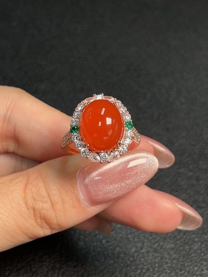 C30536315 South Red Agate Inlaid Ring Non-Gold Setting Adjustable Size Total Weight Approx. 4.54g