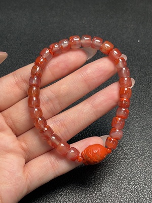 C34041496 Red Agate Bracelet with Visible Organic Matter, Total Weight Approx. 16.90g, Size ~6.9mm