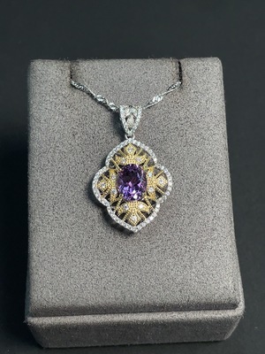 C40678989 Crystal Inlaid Pendant Non-Gold Setting Total Weight Including Chain Approx. 17.41g