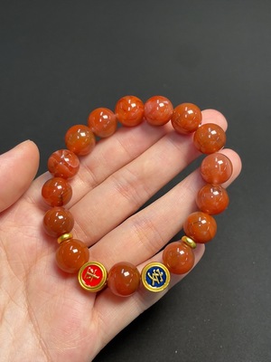 C39641440 Red Agate Bracelet, Non-Gold Inlaid, Approx. 11.6mm Beads, Total Weight About 36.17g, Visible Organic Matter