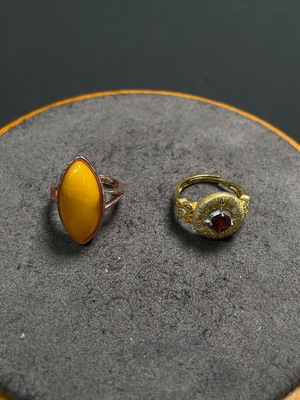 C39596098 Amber Beeswax Inlaid Ring Non-Gold Inlaid Adjustable Total Weight Approx. 4.59g
