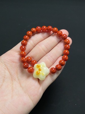 C38541747 Red Agate Bracelet + Loose Beads with Amber, Visible Organic Matter, Total Weight Approx. 13.1g, Size About 6.9mm