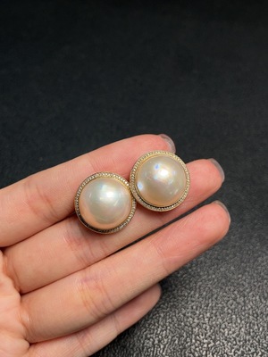 C37455874 18K seawater pearl earrings, color origin undetermined, total weight approximately 3.46g, size about 10.2mm