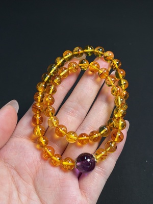 C40711891 Amber and Beeswax Bead Bracelet with Crystal, Non-Gold, Total Weight Approximately 12.37g, Bead Size About 7.2mm