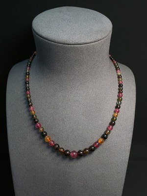 C36323452 Tourmaline Bead Necklace with Other Mineral Components and Visible Organic Matter, Total Weight Approx. 18.80g, Bead Size About 4.7mm