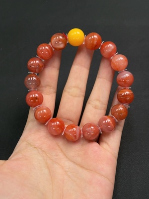 C35181957 South Red Agate Bracelet with Visible Organic Matter, Total Weight Approximately 53.38g, Size About 12.6mm