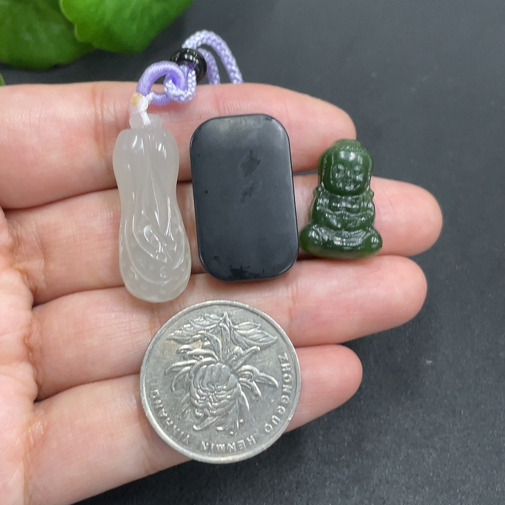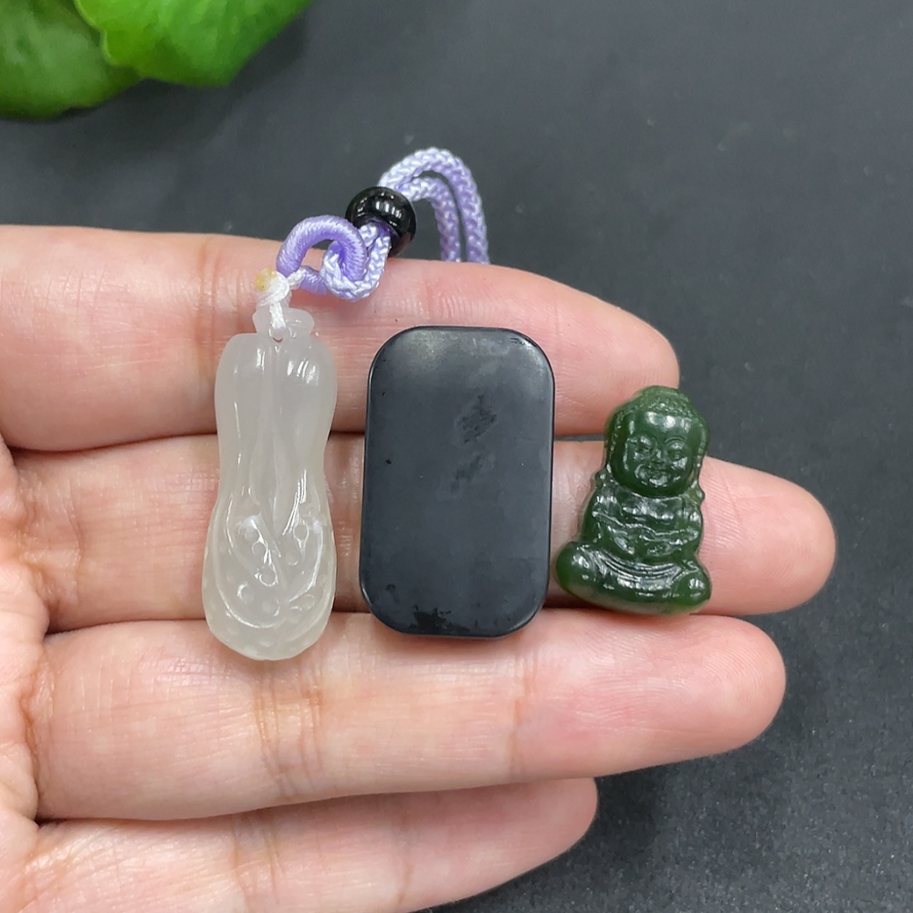 Hetian Jade Pendant Lot Total Weight 16.4g (with rope)