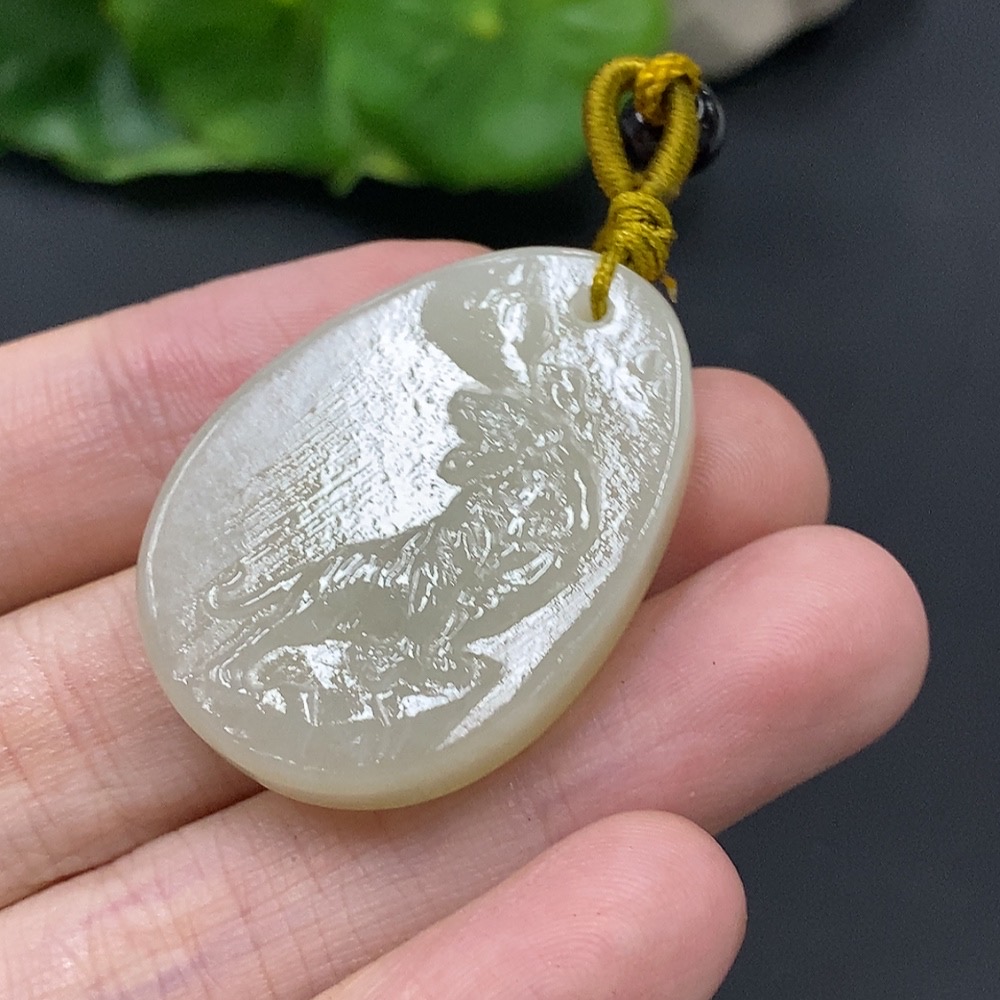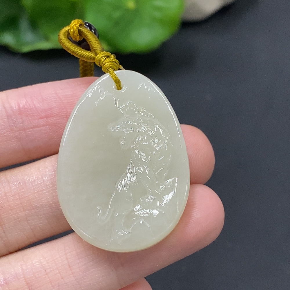 Hetian Jade Tiger Pendant with Cord, Total Weight 15g