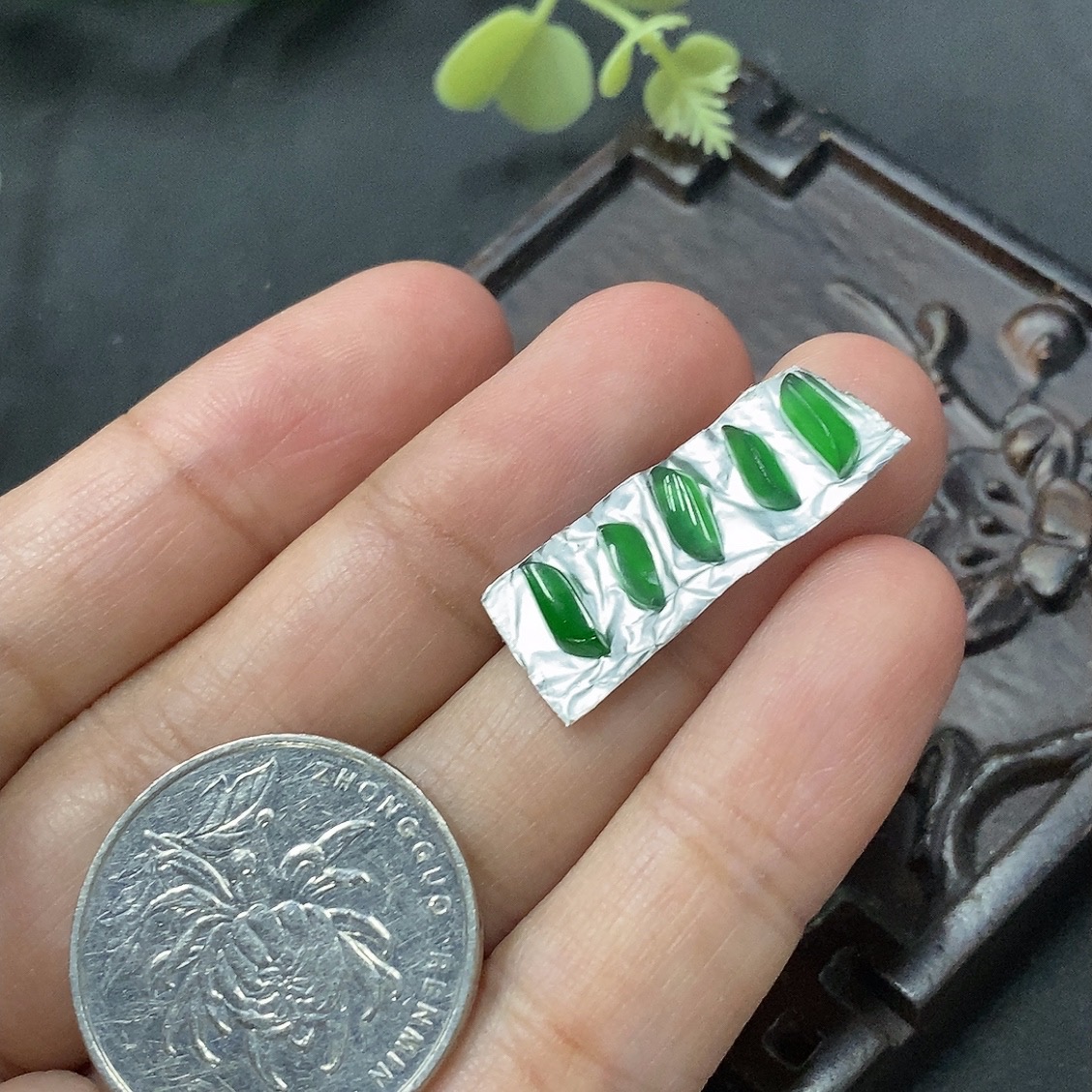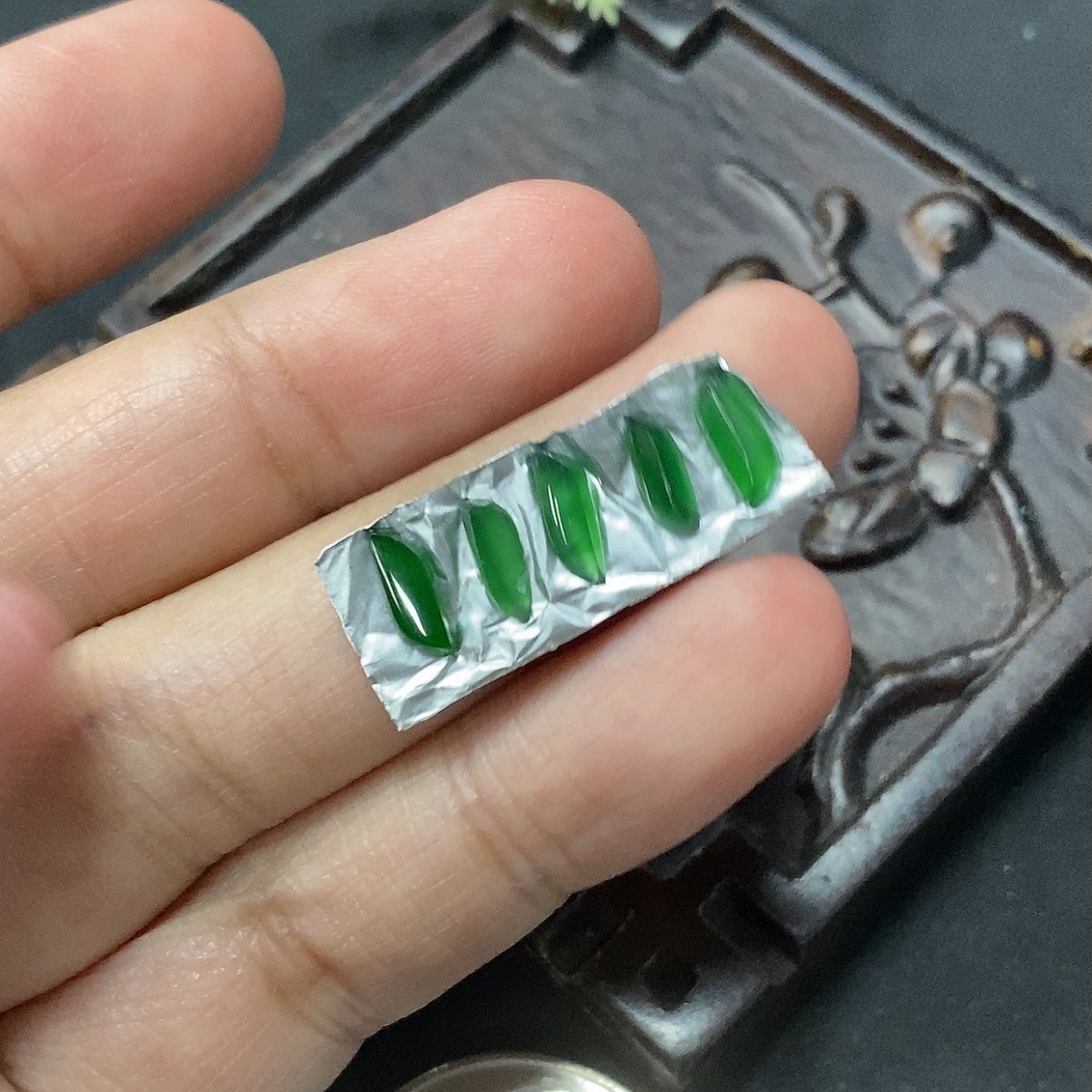 Emerald Inlaid Pieces Sold as a Lot