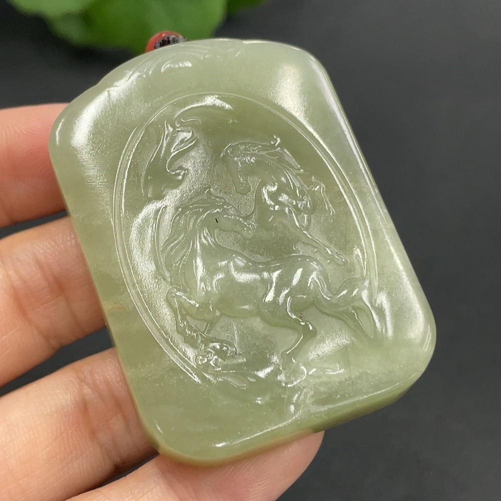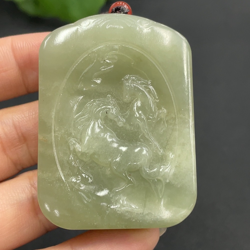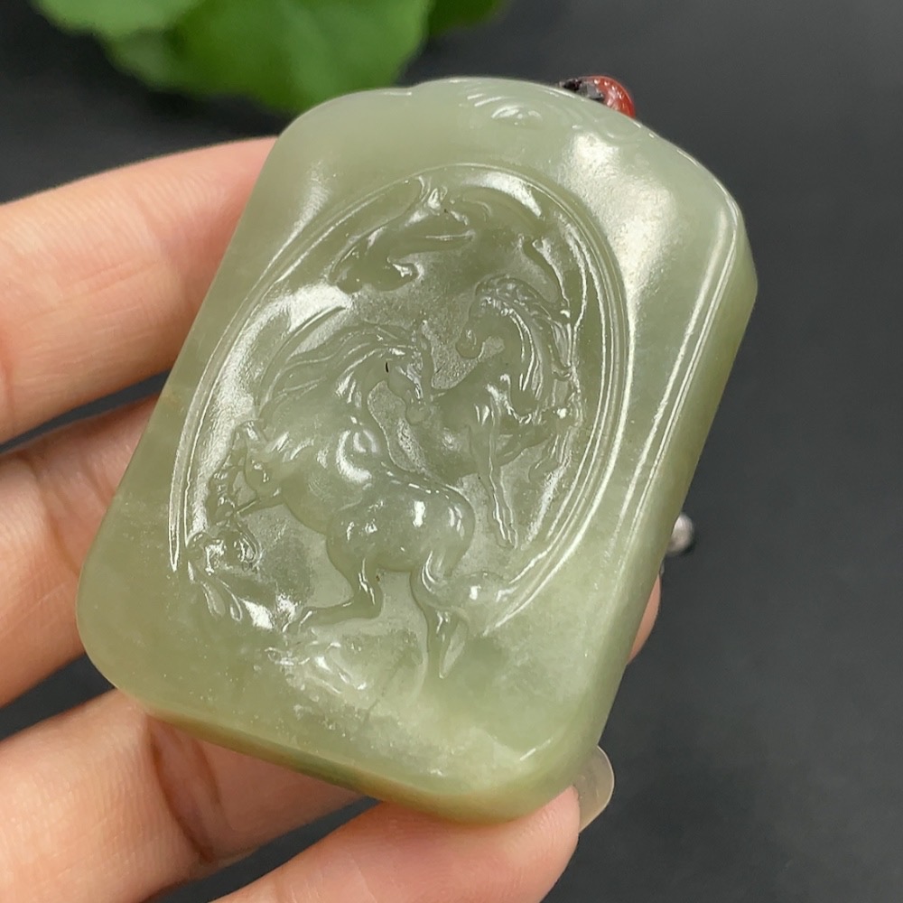 Hetian Jade Pendant - Success at One Stroke, Total Weight (including rope) 58.5g