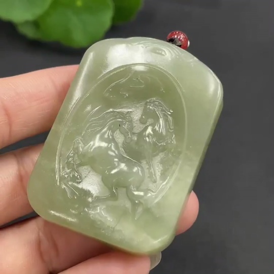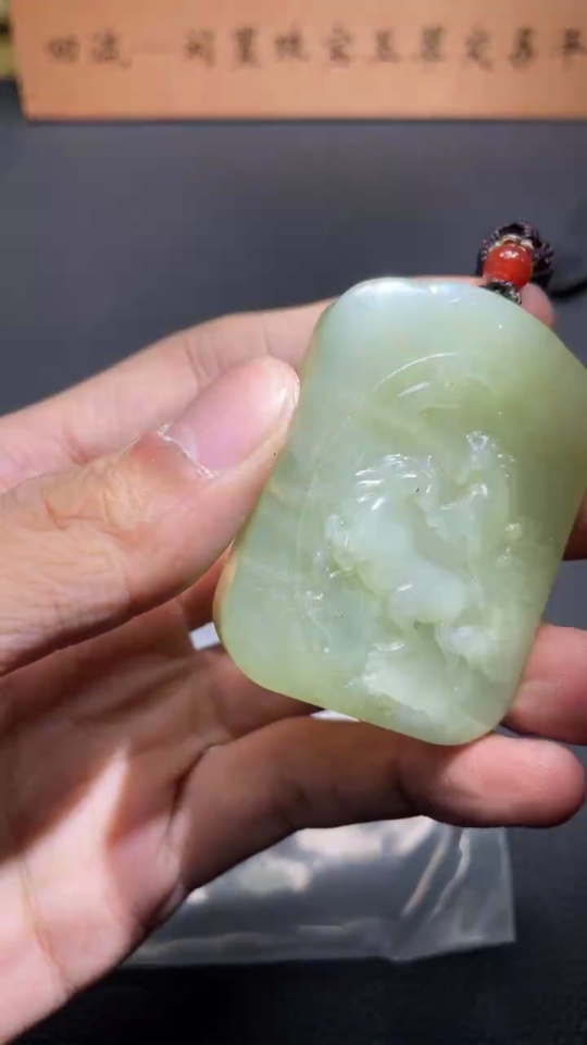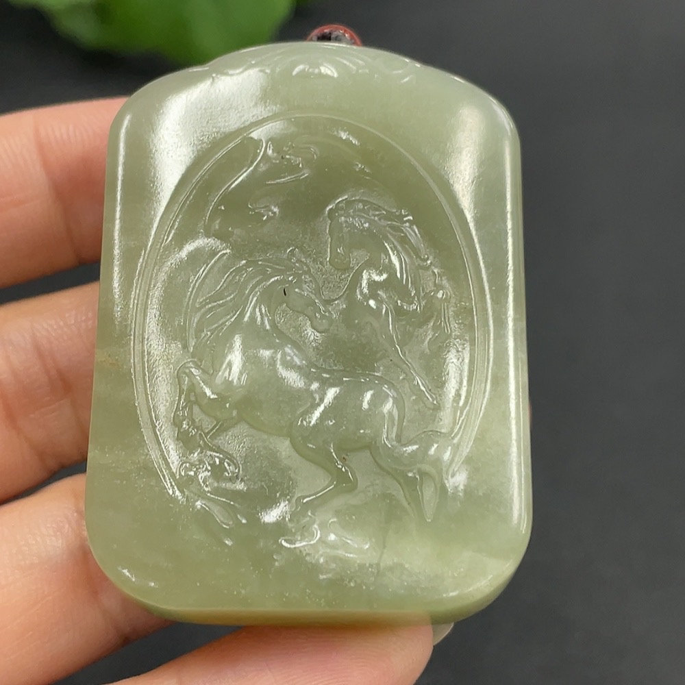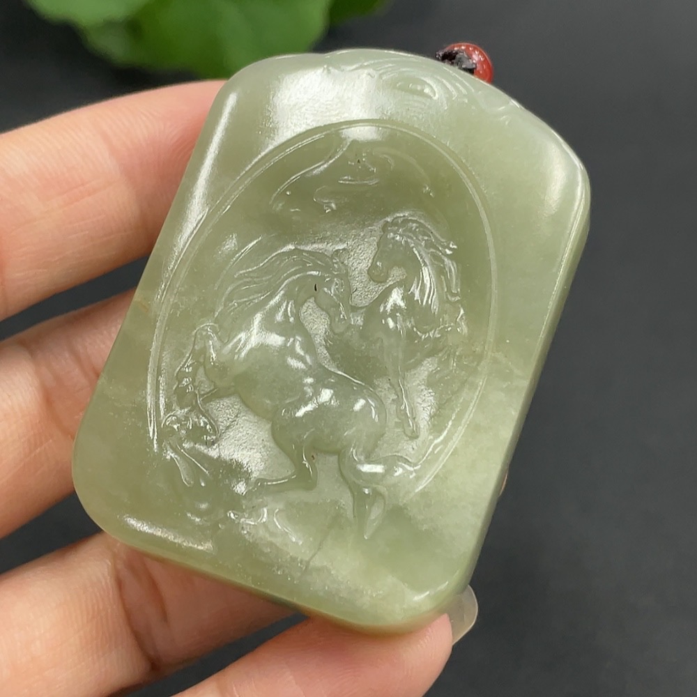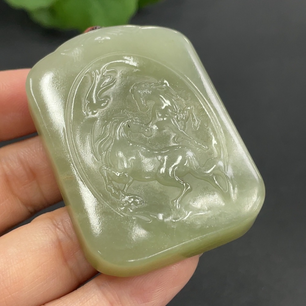 Hetian Jade Pendant - Success at One Stroke, Total Weight (including rope) 58.5g