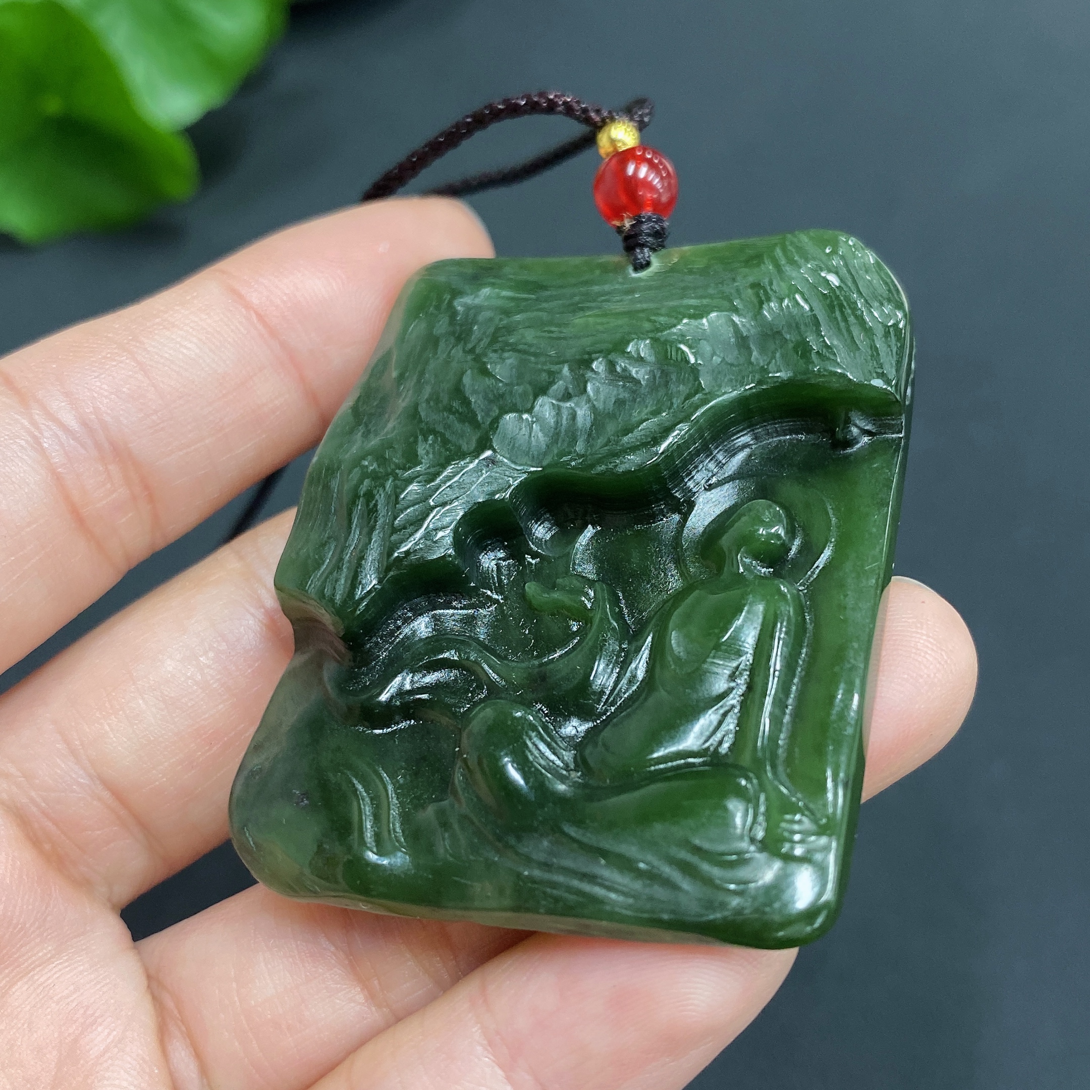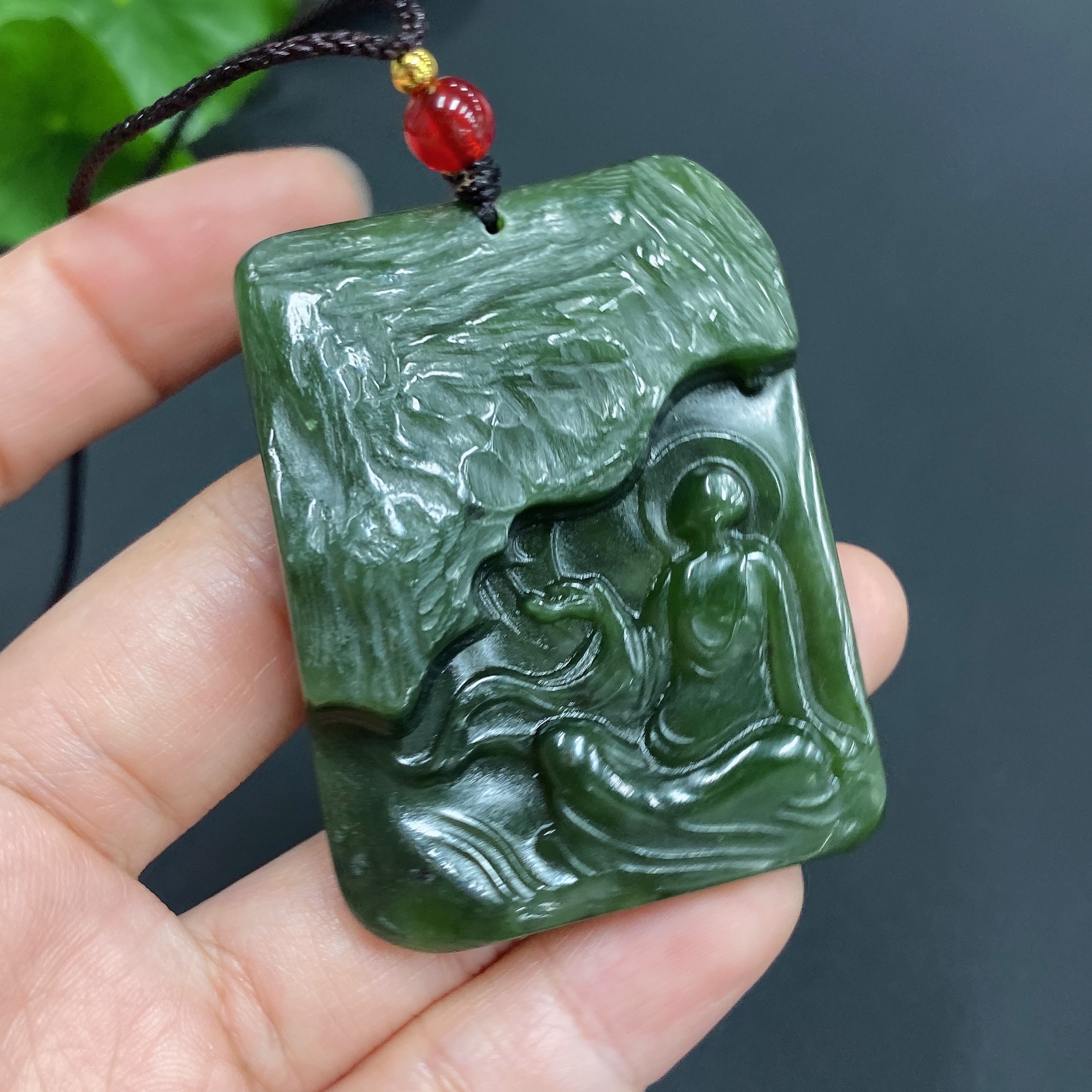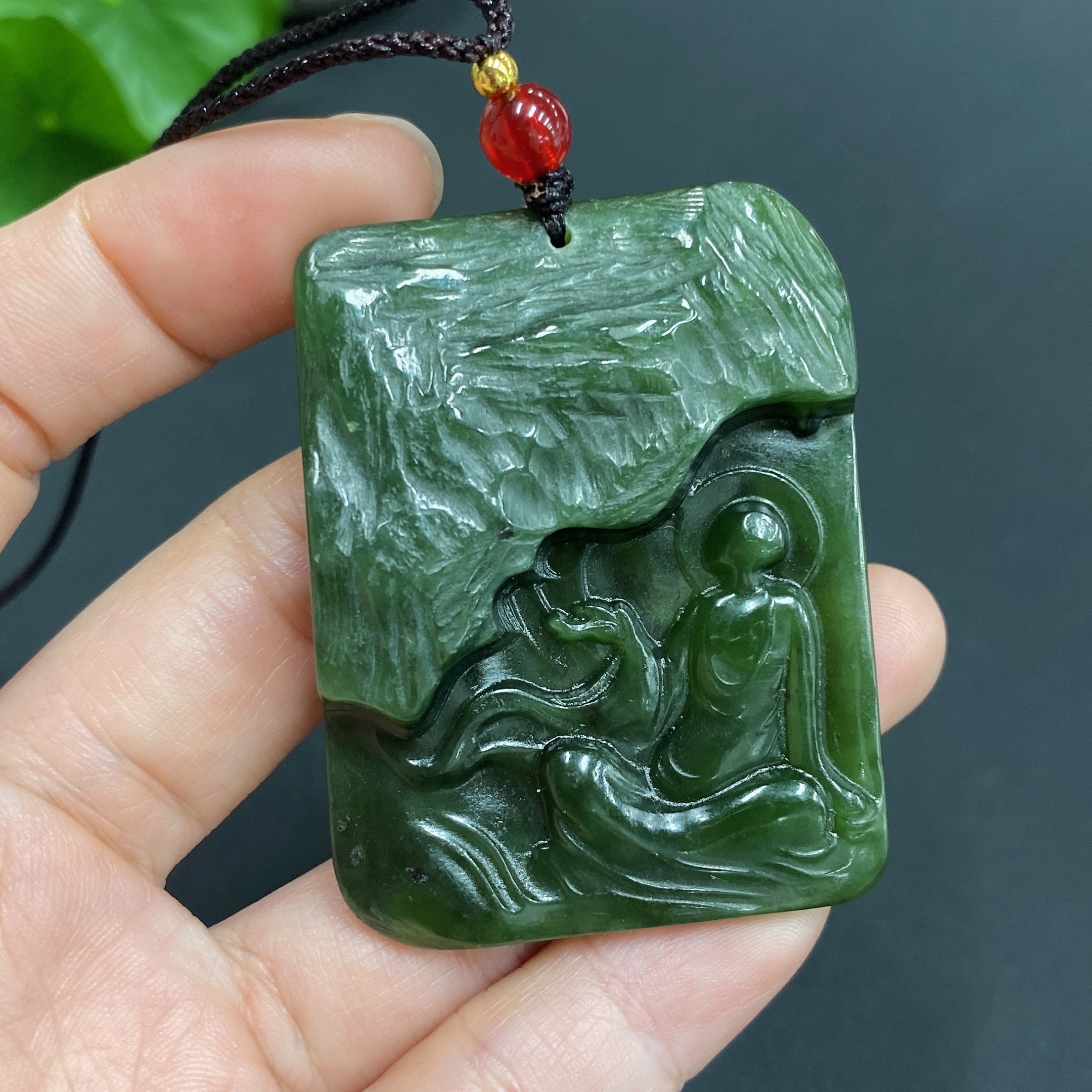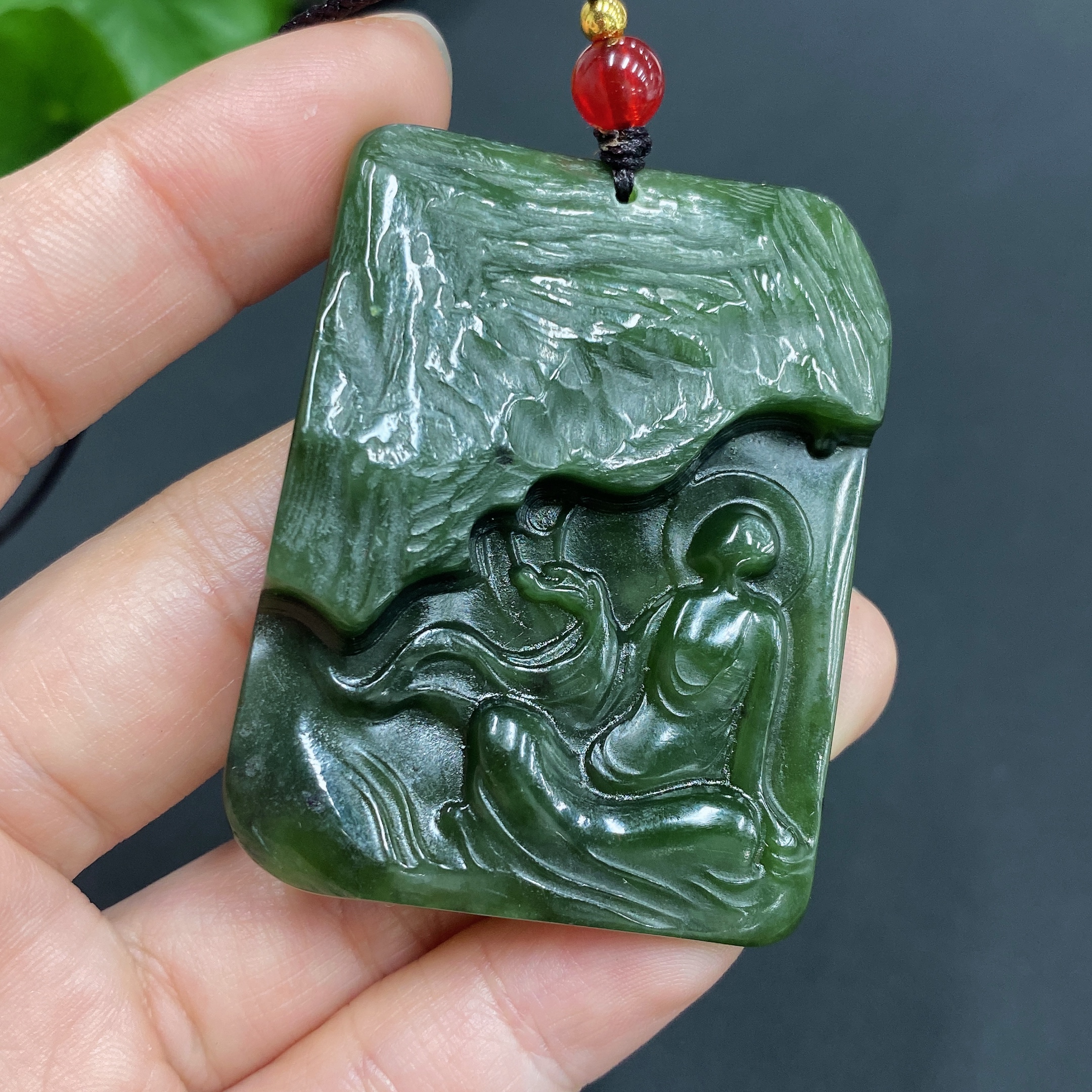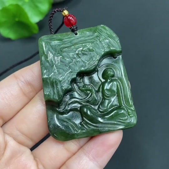 Trezaar - Engraved Hetian Jade Pendant: Enlightenment