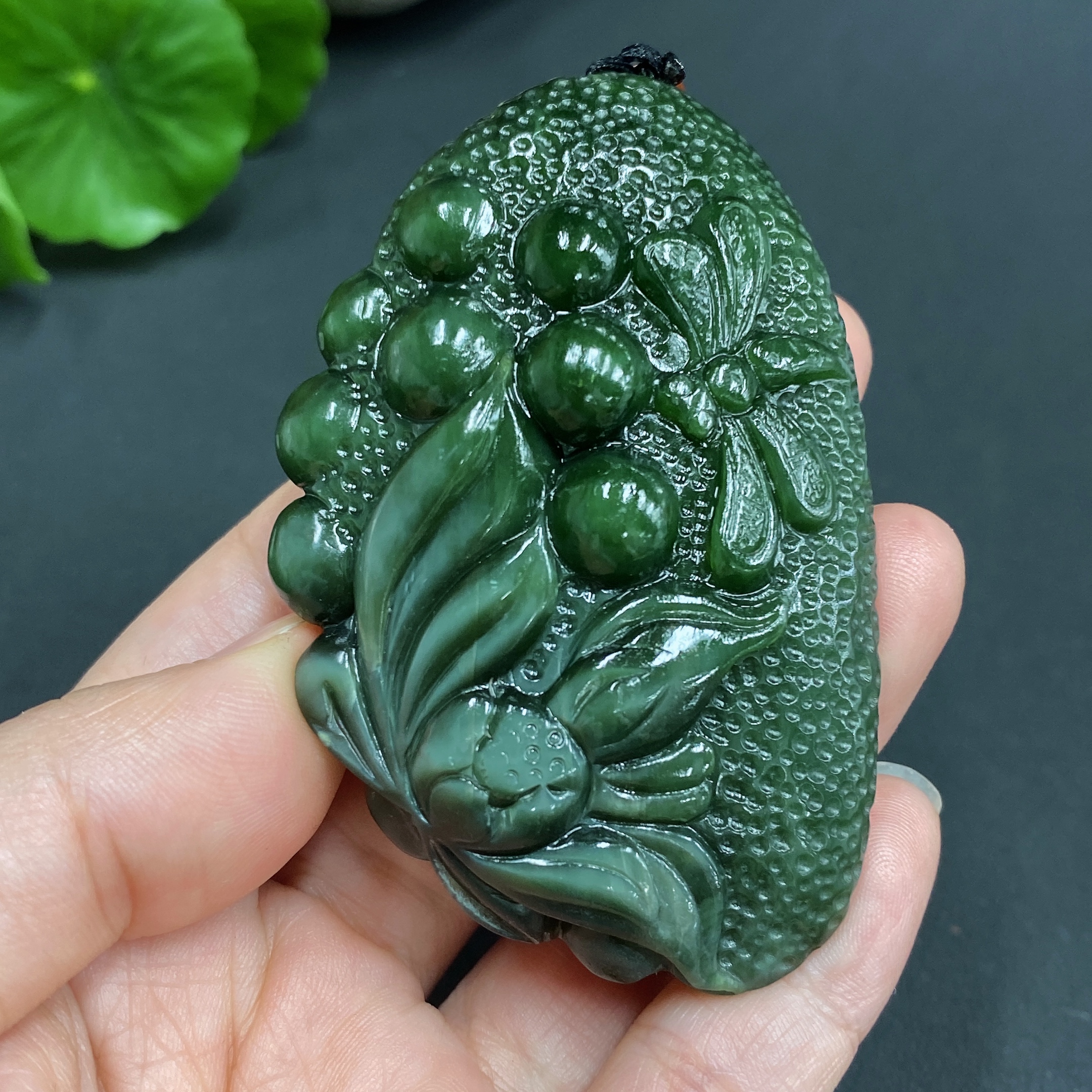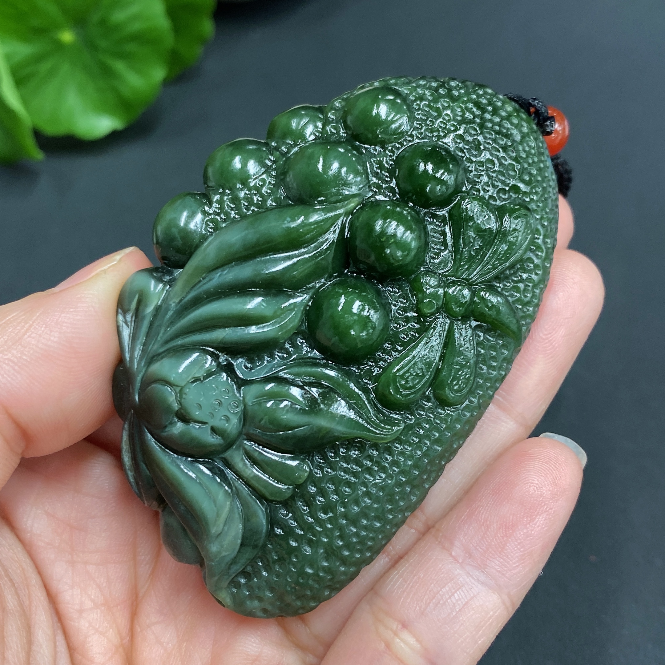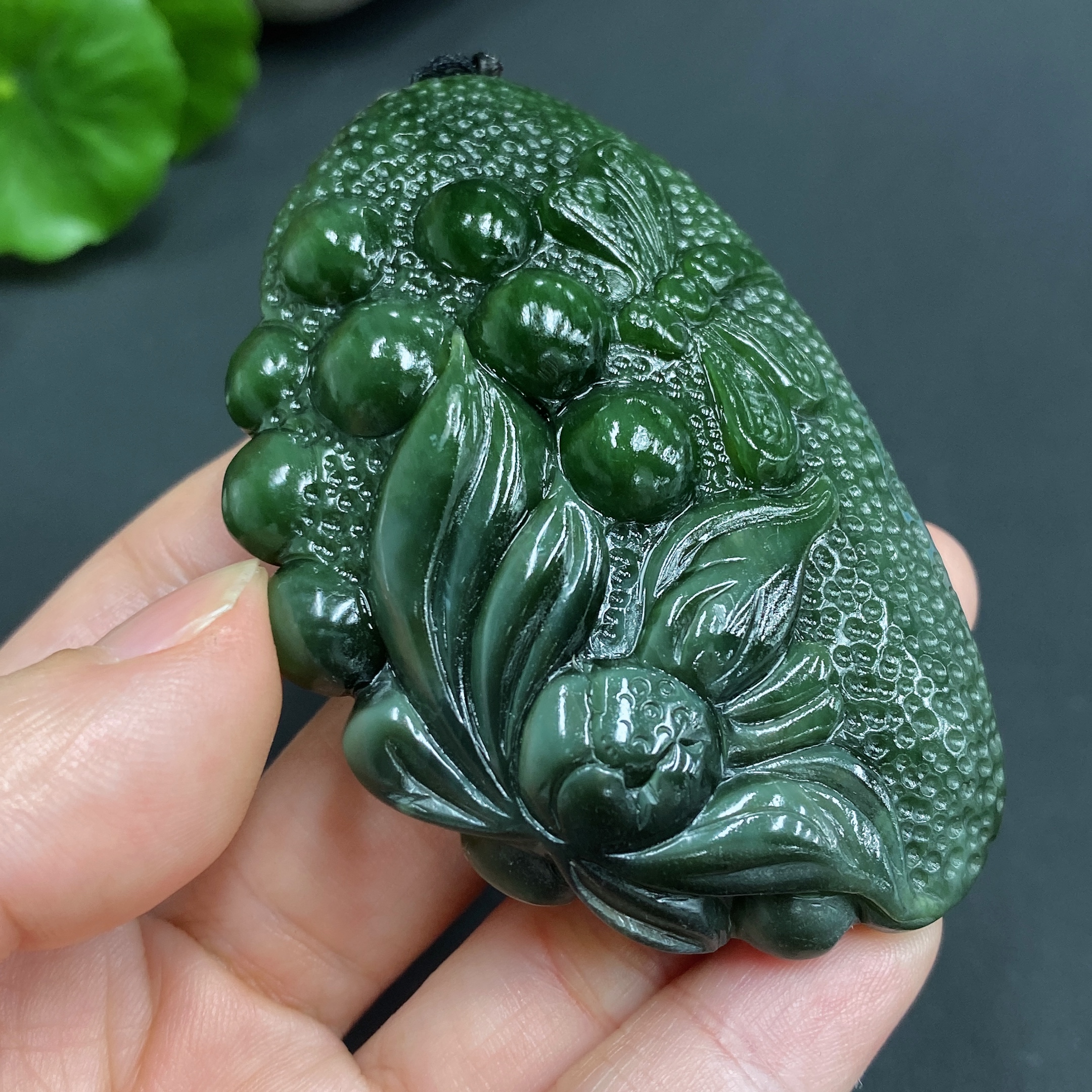 Hetian Jade Pendant Lotus Total Weight (including rope) 74g
