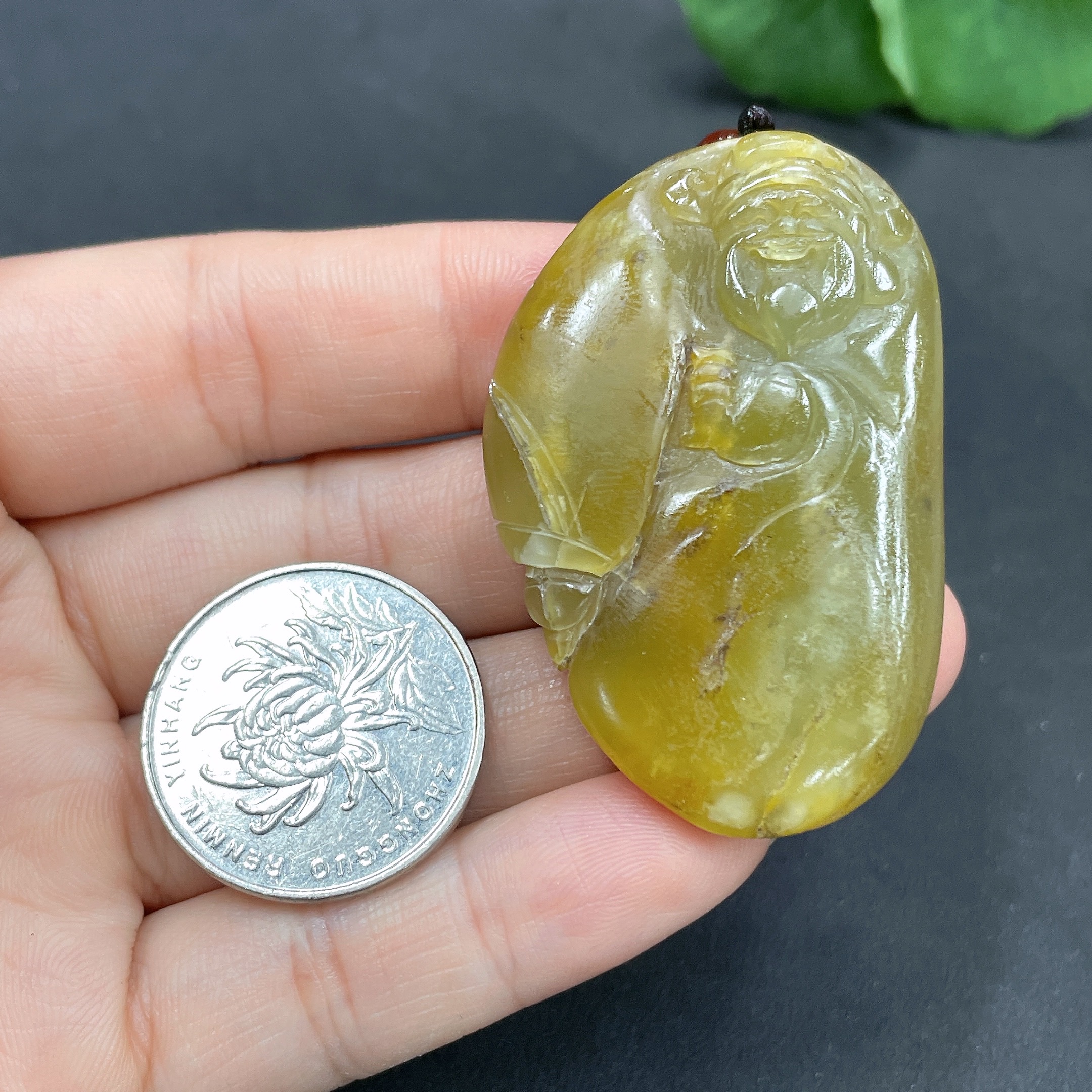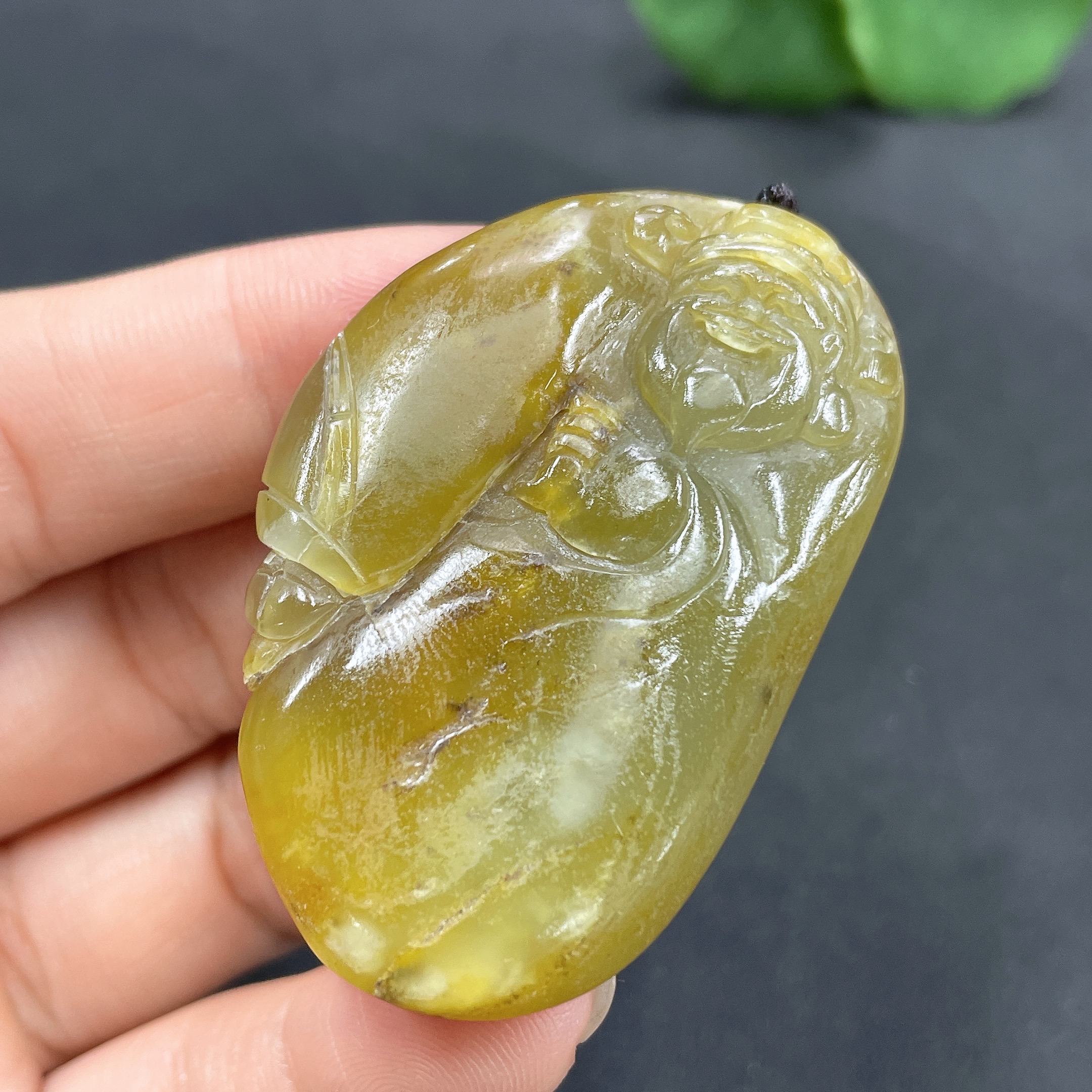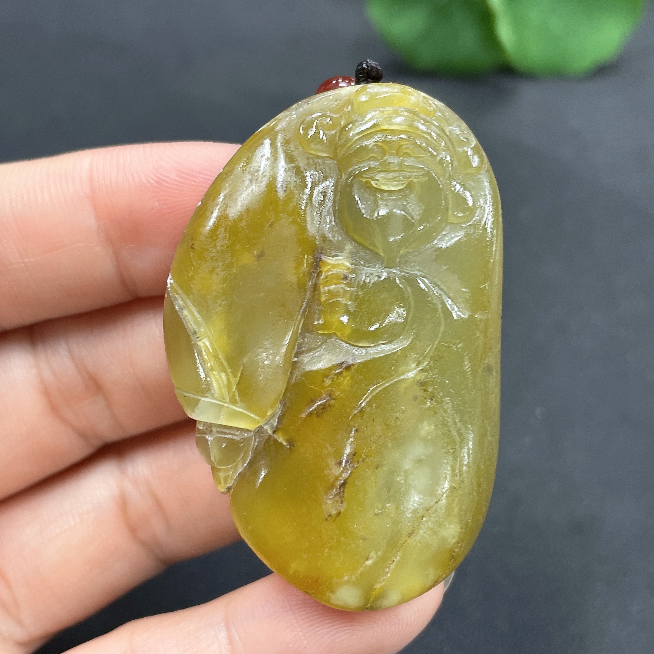Hetian Jade Pendant God of Wealth Undetermined skin color origin Total weight (including rope) approx. 30.8g