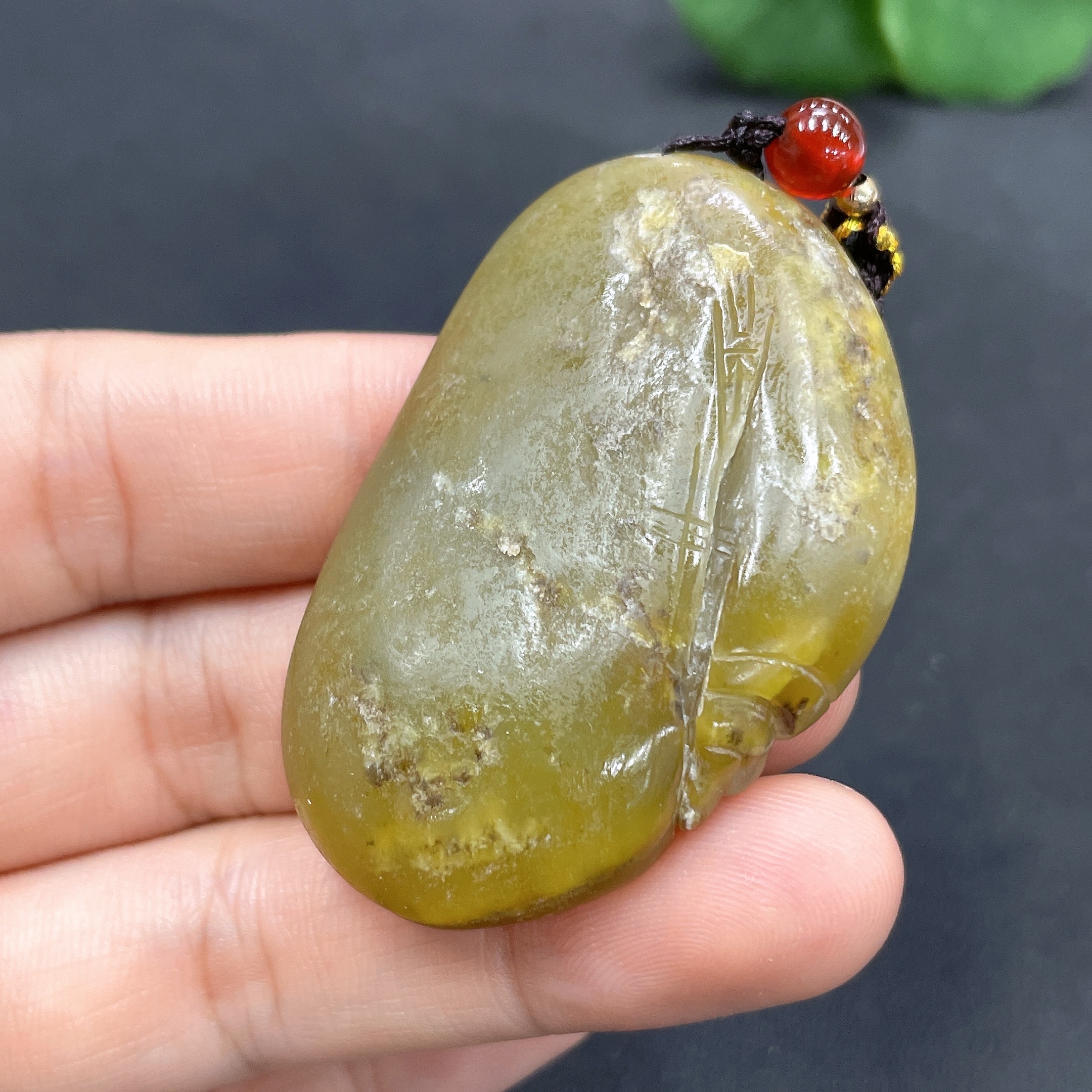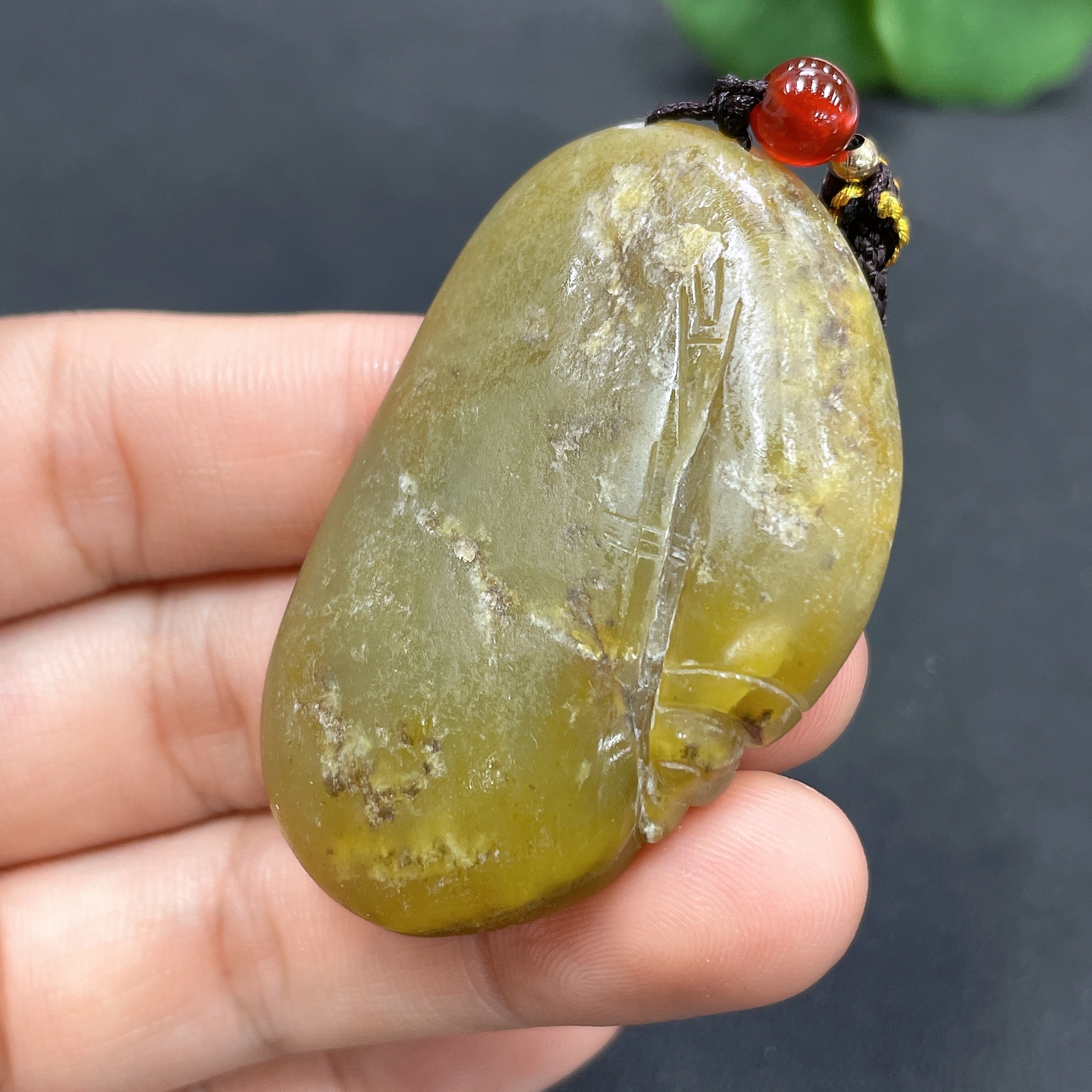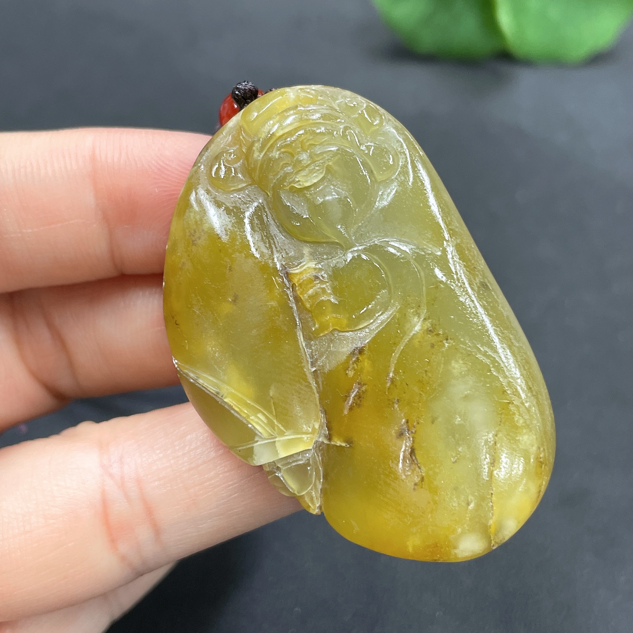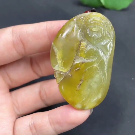Hetian Jade Pendant God of Wealth Undetermined skin color origin Total weight (including rope) approx. 30.8g