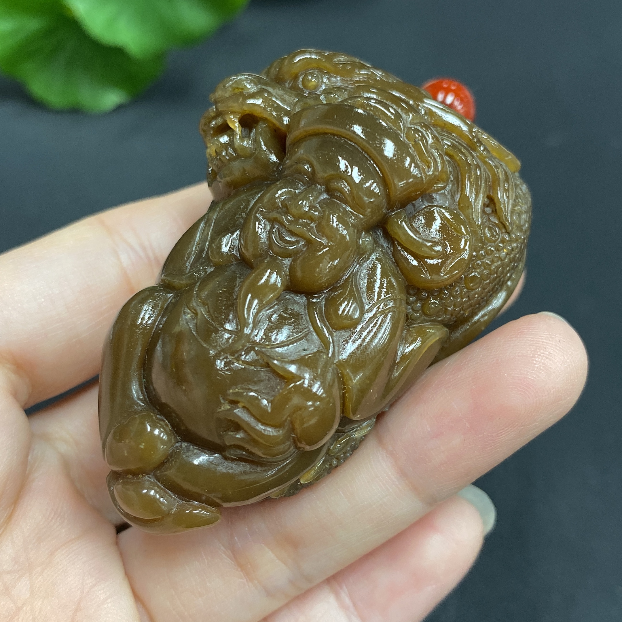 Hetian Jade Handheld Ornament - Dragon, Total Weight (Including Chain): 99.4g
