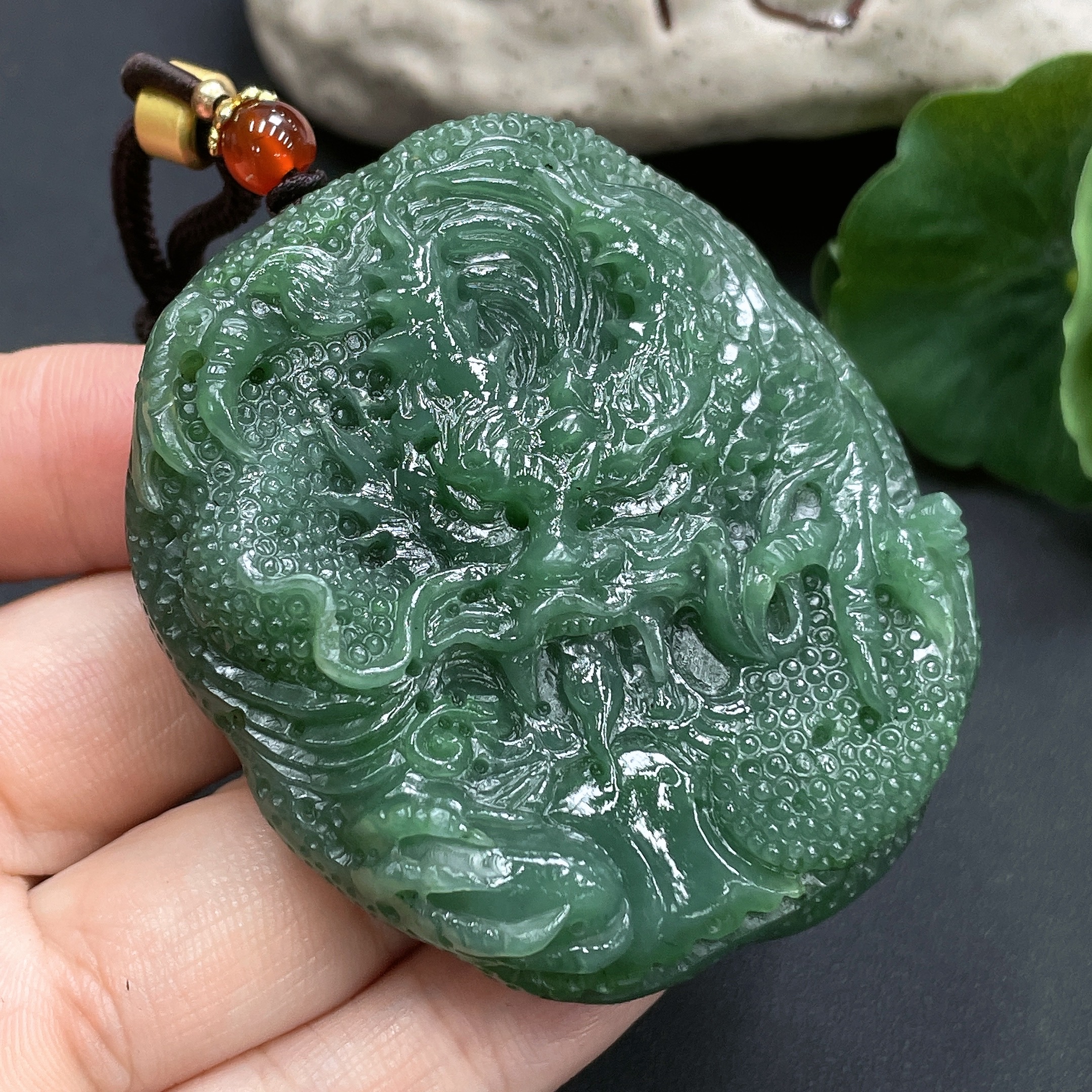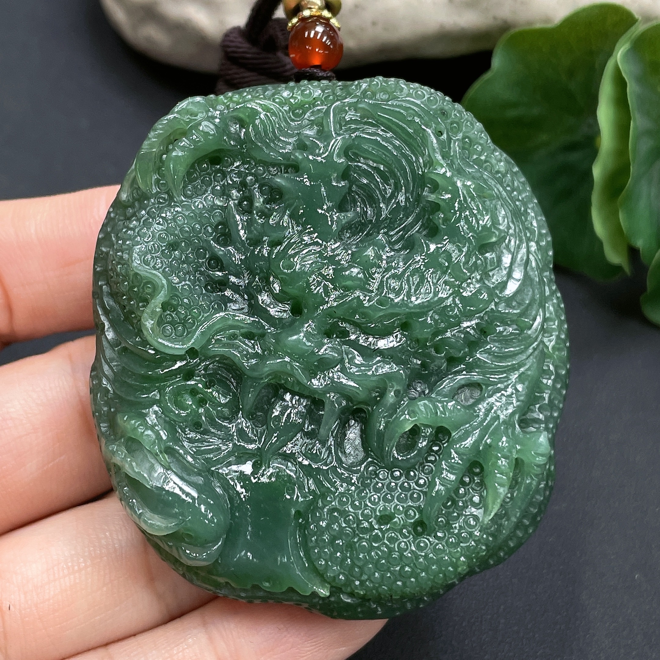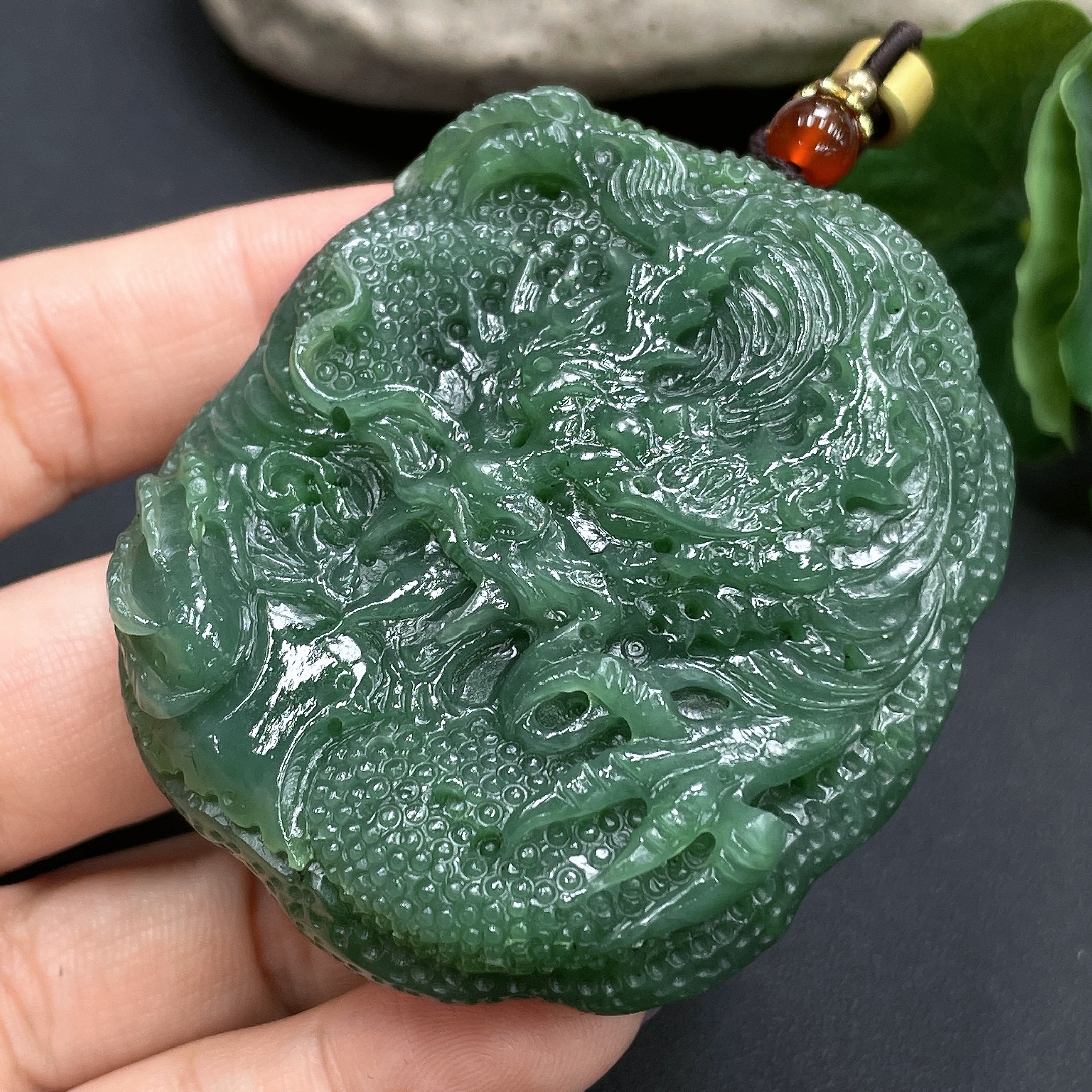 Hetian Jade Handheld Carving Dragon Total Weight (including rope) 95.3g